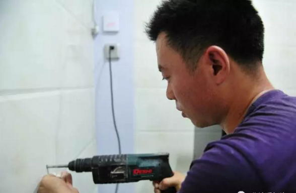 管道弄好后下一步就是安裝掛鉤,首先要用記號筆在墻上標出準確的位置,然后用電鉆打孔,最后用膨脹螺絲將掛鉤固定在墻上。